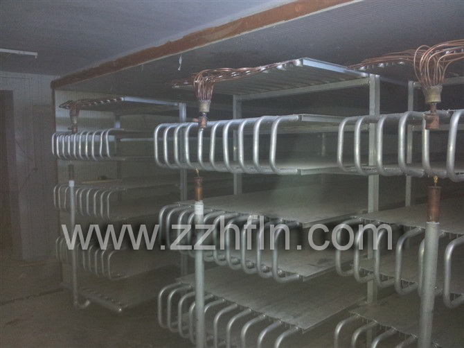 鋁合金板式擱架排管是我公司研發(fā)的用來替代Ø38無縫鋼管擱架排管的新一代產(chǎn)品.廣泛應用于分割肉類、水產(chǎn)品、禽類、面食、調理食品以及部分果蔬食品的快速凍結。與傳統(tǒng)的無縫鋼管擱架排管相比具有以下優(yōu)點: